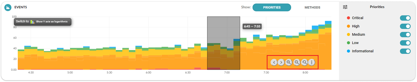 It starts on the dashboard. The new filter management features reduce clutter and help to bring out the context of relevant events. Graphs are customizable to hide/show events by method or priority and context menus have replaced the right click for a more intuitive as well as mobile-friendly access to additional actions.
