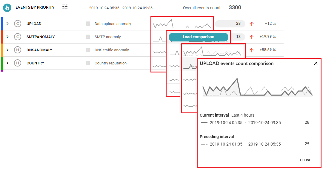 Event search was extended for better forensic analysis and now includes trend sparklines as well as percentages.
