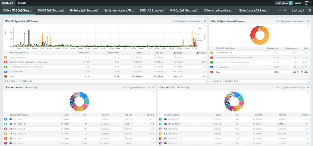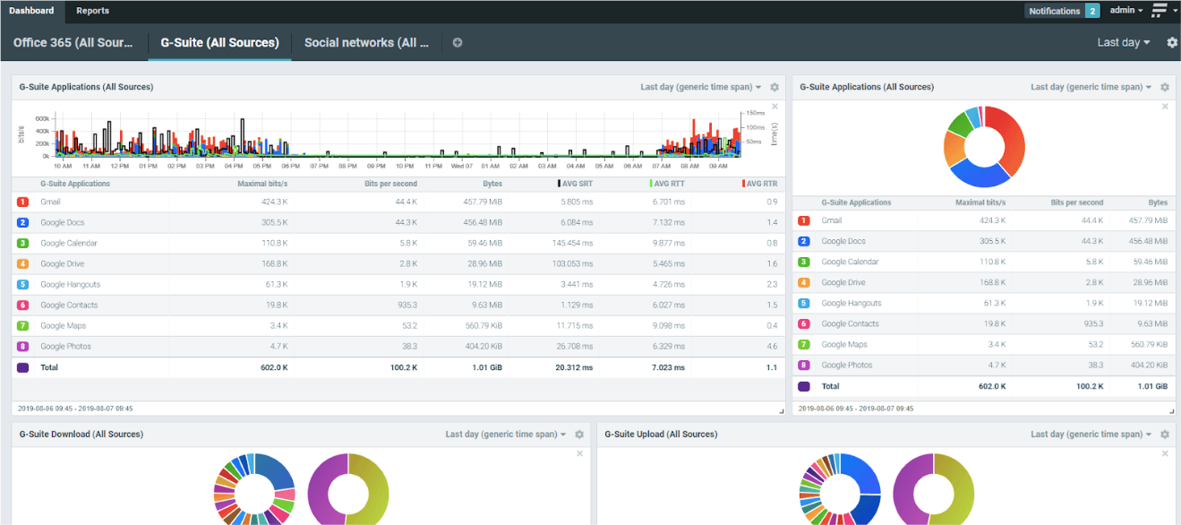 Ready to use dashboard for all common cloud apps from Google services, Office365, MS Teams, File Sharing, Salesforce, etc. are ready to be displayed within minutes of deployment (examples are shown below):