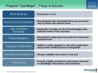 Today, we announced our latest release of the OpenEdge application development and deployment platform, version 11.1. OpenEdge 11.1 delivers new enhancements and benefits across what Progress Software calls the “Seven Keys to Success” for enabling our customers and partners to build dynamic, business process-enabled applications for secure deployment across any platform, any mobile device, and any Cloud. Some of the most valuable enhancements in OpenEdge 11.1 specifically address: