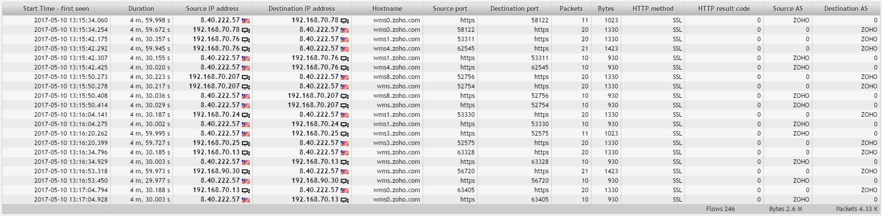 Visibility into HTTP/HTTPS is not enough though. Even if you have exporters which can monitor and export information about HTTP/HTTPS in the flow data, you need such information for both request and response to pair and differentiate individual requests and responses . Such functionality is available in Flowmon Probe from version 8.03. So the flows contain information about hostname, HTTP method, HTTP result code, etc. in both requests and responses. Yes, all the cloud services run HTTPS, but no worries - Probes monitor the SNI so we still get the hostname information.