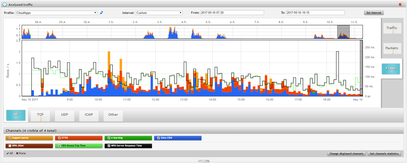 Fig. 2: Cloud services traffic chart including NPM metrics visualization.