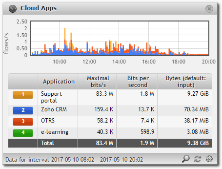 The last step is to analyze measured statistics for identified communications with cloud services. The best way would be to analyze a created profile for all used cloud services (one channel per one cloud service / HTTP host). Then in Flowmon Monitoring Center / Analysis you can see the traffic chart with NPM metrics (picture above), get various top statistics or list through all the flows (communications) and see all measured data. Also, don’t forget to create reports to get the information about cloud services usage regularly and use report chapters (widgets) on your dashboard to have an immediate overview about transferred data...