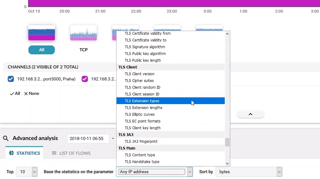 We've added support for Transport Layer Security (TLS) to Flowmon to help you with encrypted traffic use-cases. We can loosely divide them into two categories. The first being cryptographic assessment. We investigate SSL/TLS protocol versions, cybersuites (encryption algorithms, key lengths) as well as certificates. The second category is monitoring and security. Here, we can leverage JA3 fingerprinting to pinpoint suspicious actors, use Application-Layer Protocol Negotiation (ALPN) to identify protocols in encrypted communication, investigate Server Name Indication (SNI) and much more.