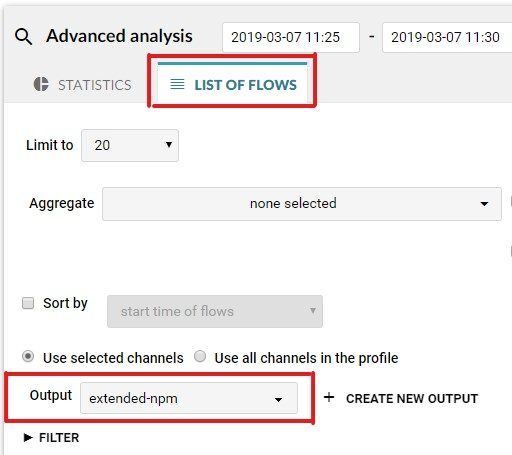 In section “Advanced analysis” switch to “List of flows” tab
