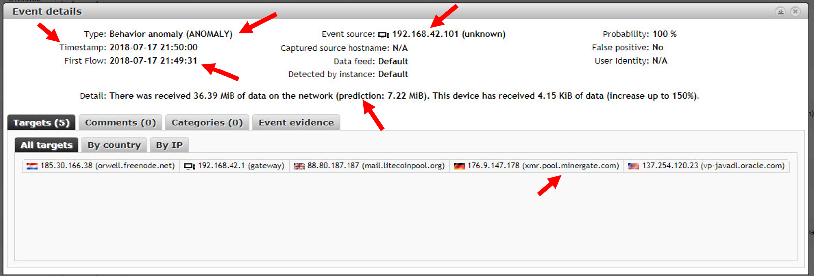 Anomaly detection paired with strong analytics capabilities (i.e. the ability to look at who is talking to whom as soon as we get hints of unwanted behavior) provides another layer of security against rapidly evolving threats. Detection of this specific crypto-mining software has been added to the set of Behavior Patterns and distributed to our customers. Now customers will be notified via the BPATTERNS detection method that hosts are running this exact malicious software. However, it is important to be aware that the general principles and various detection techniques of Flowmon ADS allow a way to detect malicious activities, even without knowing their signature or behavior pattern.