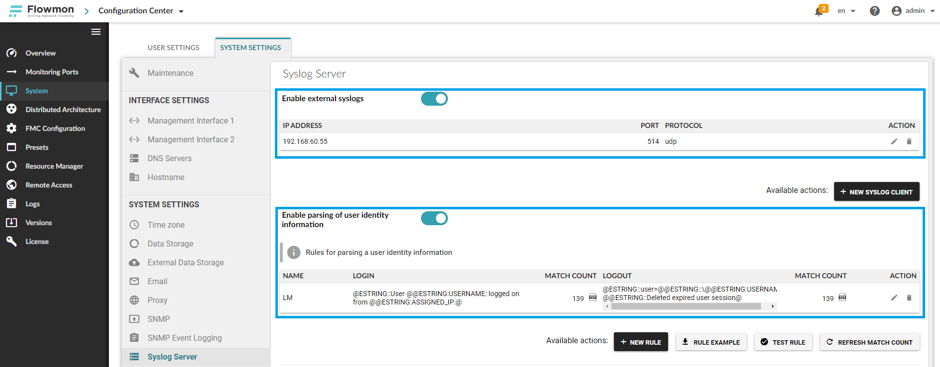 On the Flowmon side, you need to enable the built-in syslog server and configure the LoadMaster as an authorized source of syslog messages.