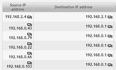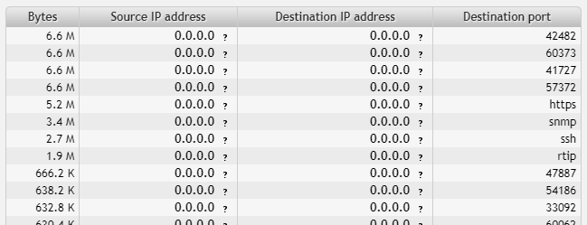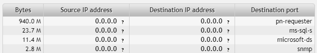 From the numbers of destination ports in use we can deduce the purpose of the machine 192.168.2.4. You can hover over records of known ports (such as HTTPS or SNMP) to reveal the actual port number.