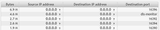 Ports 16390-16396 correspond to RTP and RTCP (audio and video streaming). Port number 2048 is sometimes associated with dls-monitor, WCCP protocol in Cisco IOS and shiva/spider integrator routers (threat) listening on this port (Speed Guide). However, this is not the case. Port 2048 is an ICMP communication and we can easily verify this assumption by adding an expression to our filter (see below).