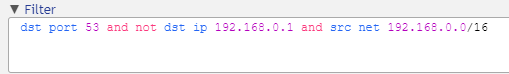 dst port 53 and not dst ip 192.168.0.1 and src net 192.168.0.0/16