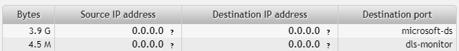 Port number 445 is used by Microsoft Directory Services - a large volume of data (3.9GB) was transmitted. Port 2048 is an ICMP communication.