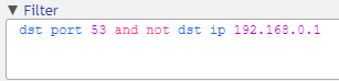 Our filter now consists of two expressions joined together “dst port 53 and not dst ip 192.168.0.1”.