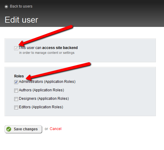 The only thing left to do is go to the edit screen and assign the new user to the Administrators role.