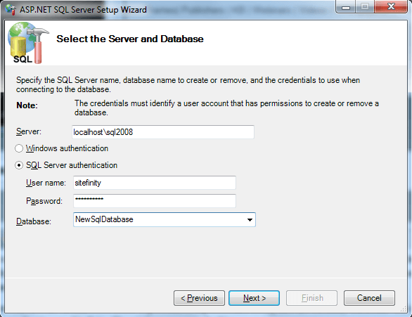 When we complete these steps, the database will be ready for use by the SqlMembershipProvider. Now we can proceed with registering the provider with Sitefinity.