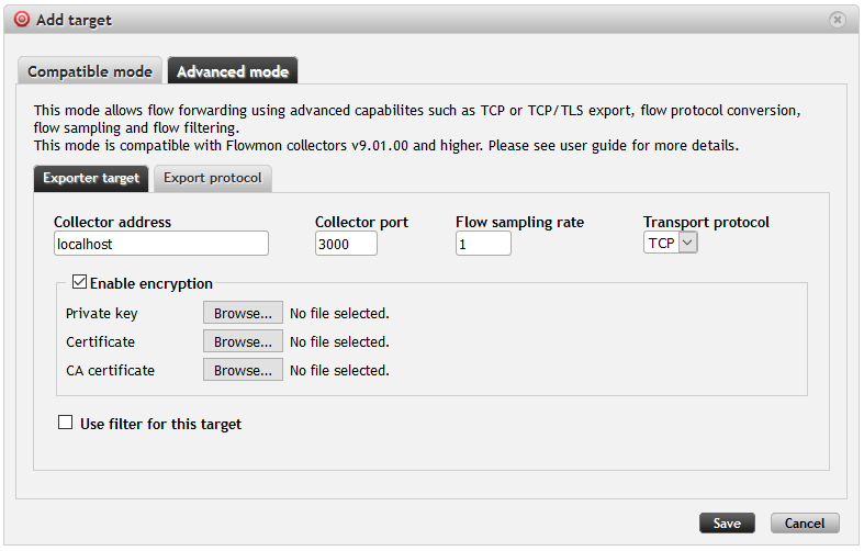 Flow forwarding is continuously extended with features tailored for the requirements of modern networks and needs of customers. In addition to defining a target, you can also set flow sampling (suitable for statistical analysis, saves storage), flow filtering (when you want to forward just a portion of flow data, e.g. some subnet) and also change the transport protocol to reliable TCP and use encryption (TLS). Recently, we added the conversion of flow format.