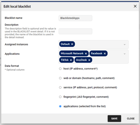 We have added a new type of local blacklist that is using network intelligence about SaaS applications, providers and cloud platforms to pick those of your interest as a custom blacklist.