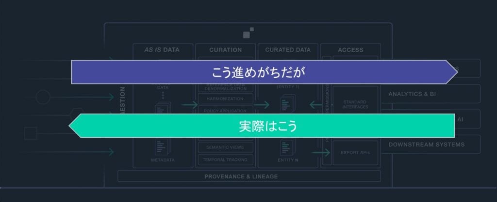 一般のデータ統合といわれるプロジェクトでは左から右にプロジェクトを進めていくと考えがちです。