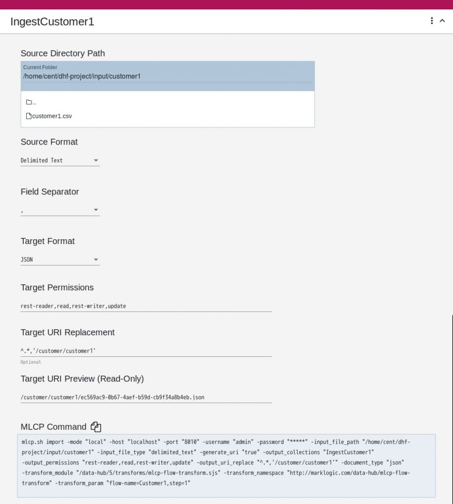 7. IngestCustomer1というStepが作成されますので、下記の通り設定します。
