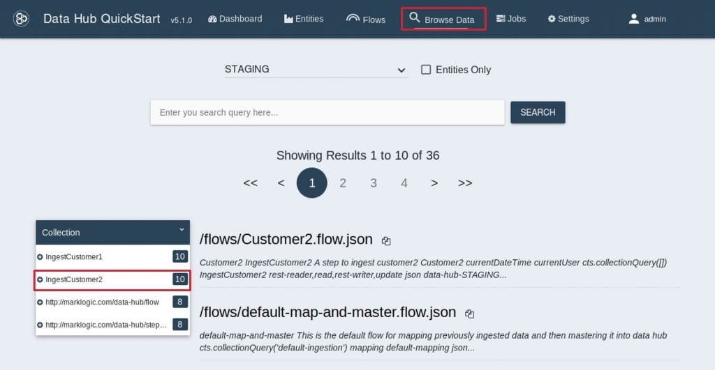 すると、data-hub-STAGINGとdata-hub-FINALという2つのデータベースと関連するデータベースが作成されていることがわかります。