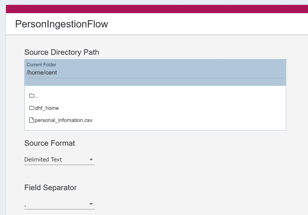 ここではIngestion stepを利用して、CSVのデータをJSON形式でdata-hub-STAGINGデータベースに格納しています。 以下の設定以外はデフォルトの設定となります。