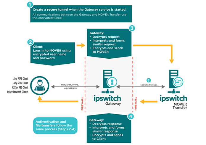 Because gateways can add hardware, software, and operational costs, MOVEit Managed File Transfer by Ipswitch is often deployed in the DMZ, without a gateway server. However, MOVEit Gateway can act as a proxy between inbound connections from the public network and your internal trusted network. Deployed in the DMZ network, it enables MOVEit Transfer to be deployed behind the firewall.