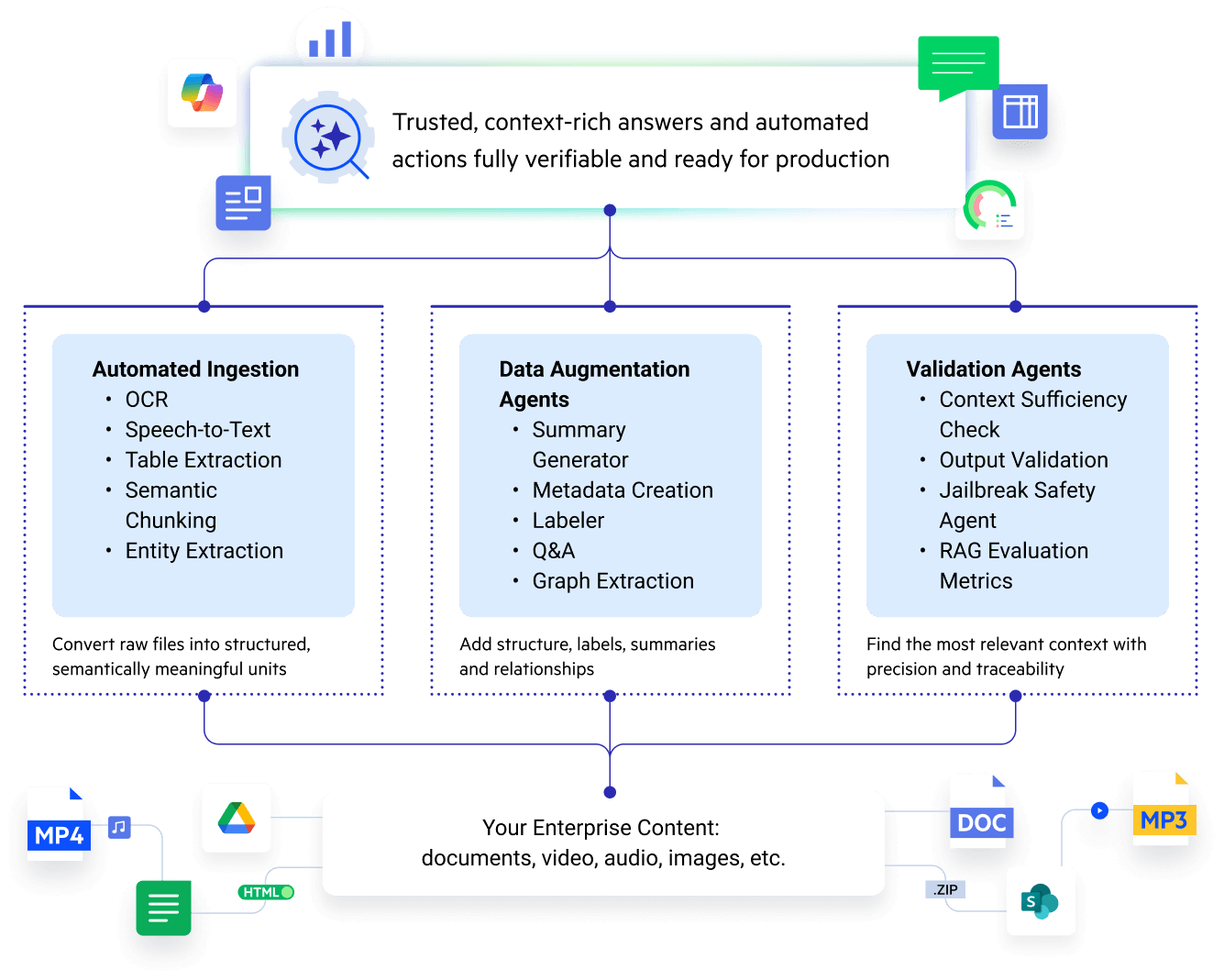 From data ingestion to validation, the AI agents embedded within the Progress® Agentic RAG solution elicit responses that are accurate, explainable and aligned with your organization’s real-world context.