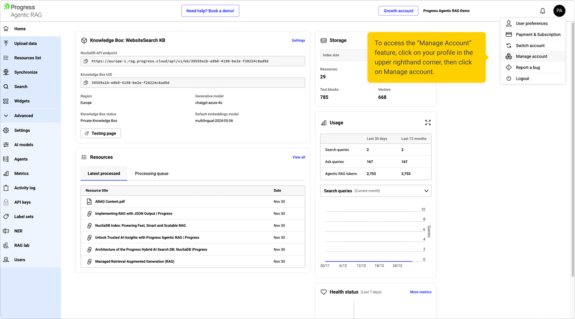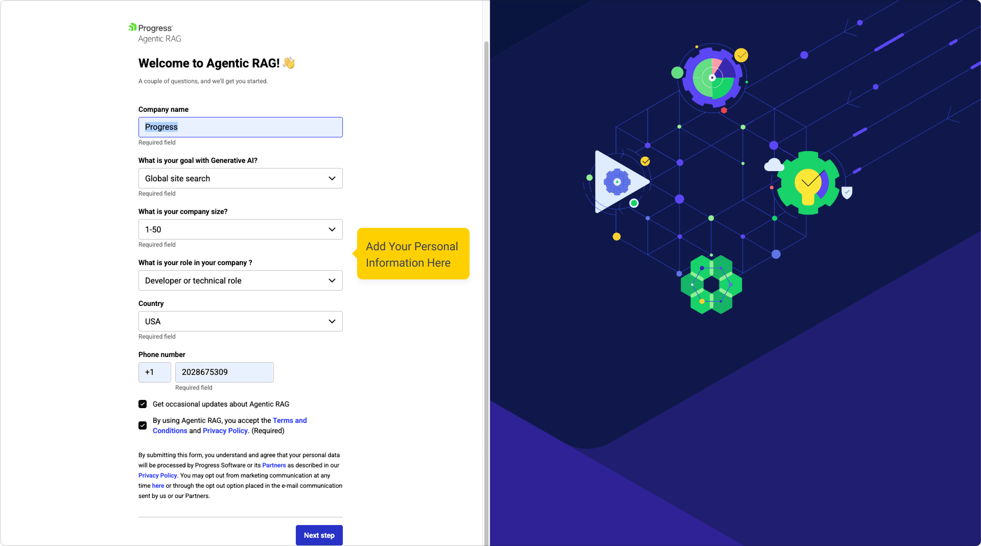 Watch the video or follow the steps below to set up Progress® Agentic RAG in minutes.