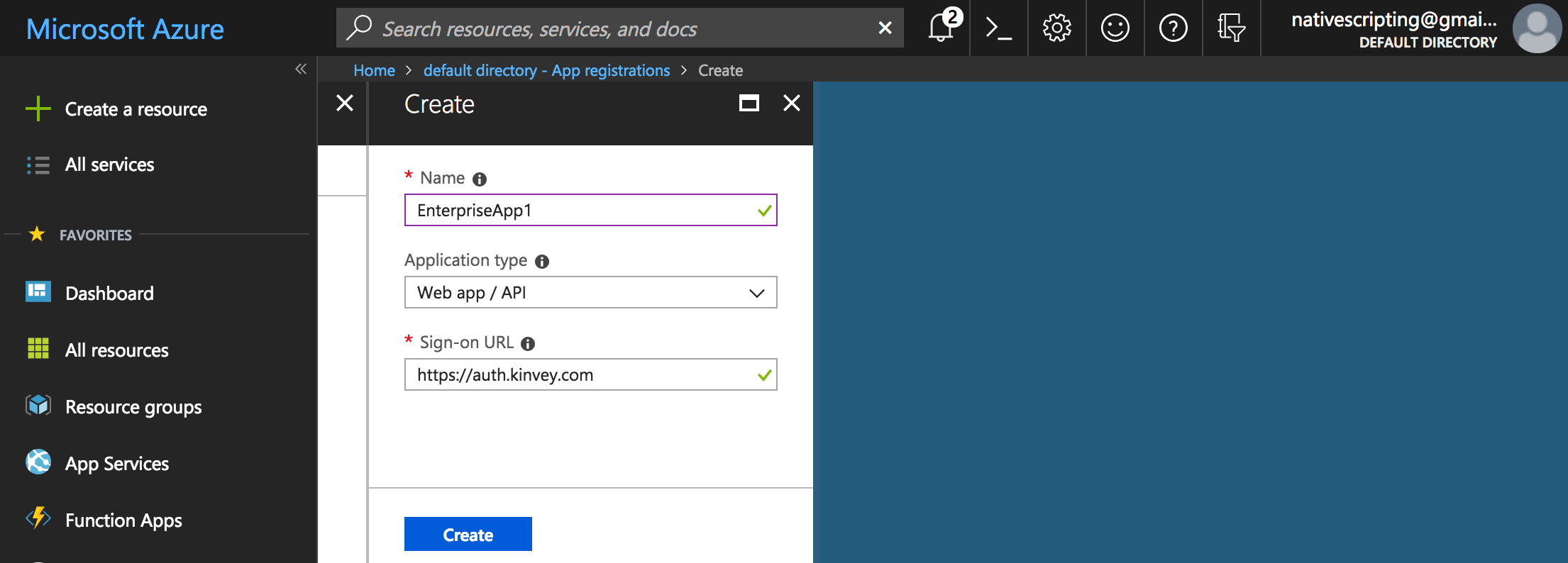 Finally we’ll glue authentication together with the help of our fully-managed platform offering low code enterprise and legacy system acceleration, Kinvey (pronounced Kin-vey, like convey). Kinvey makes it ridiculously easy for developers to set up, use and operate a cloud backend for their mobile apps. This allows you not to worry about connecting to various cloud services including Azure, setting up servers for your backend, or maintaining and scaling them.