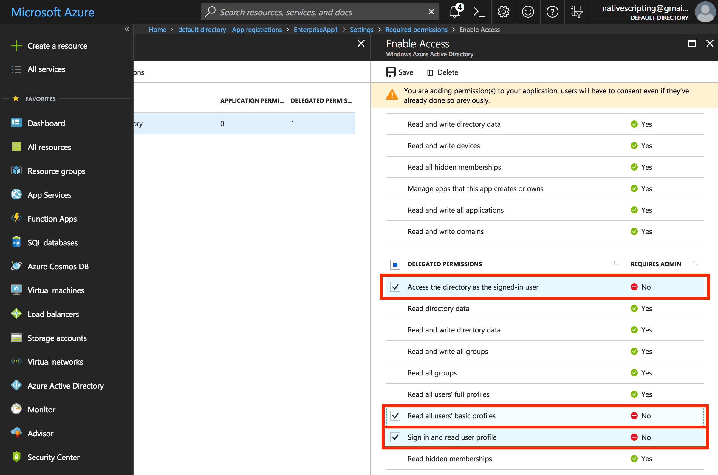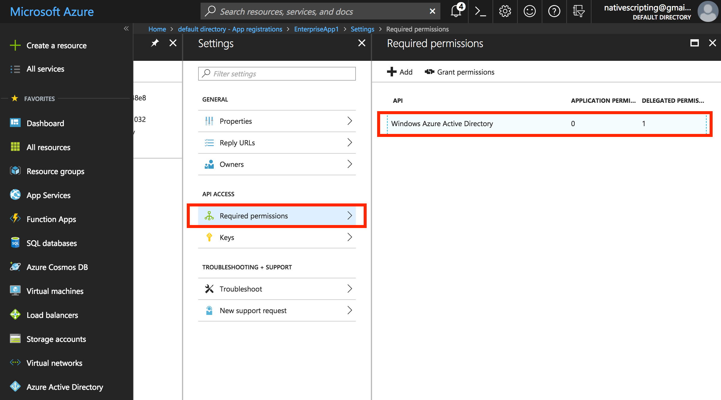 - Back in the application settings, choose Required Permissions and then Windows Azure Active Directory.