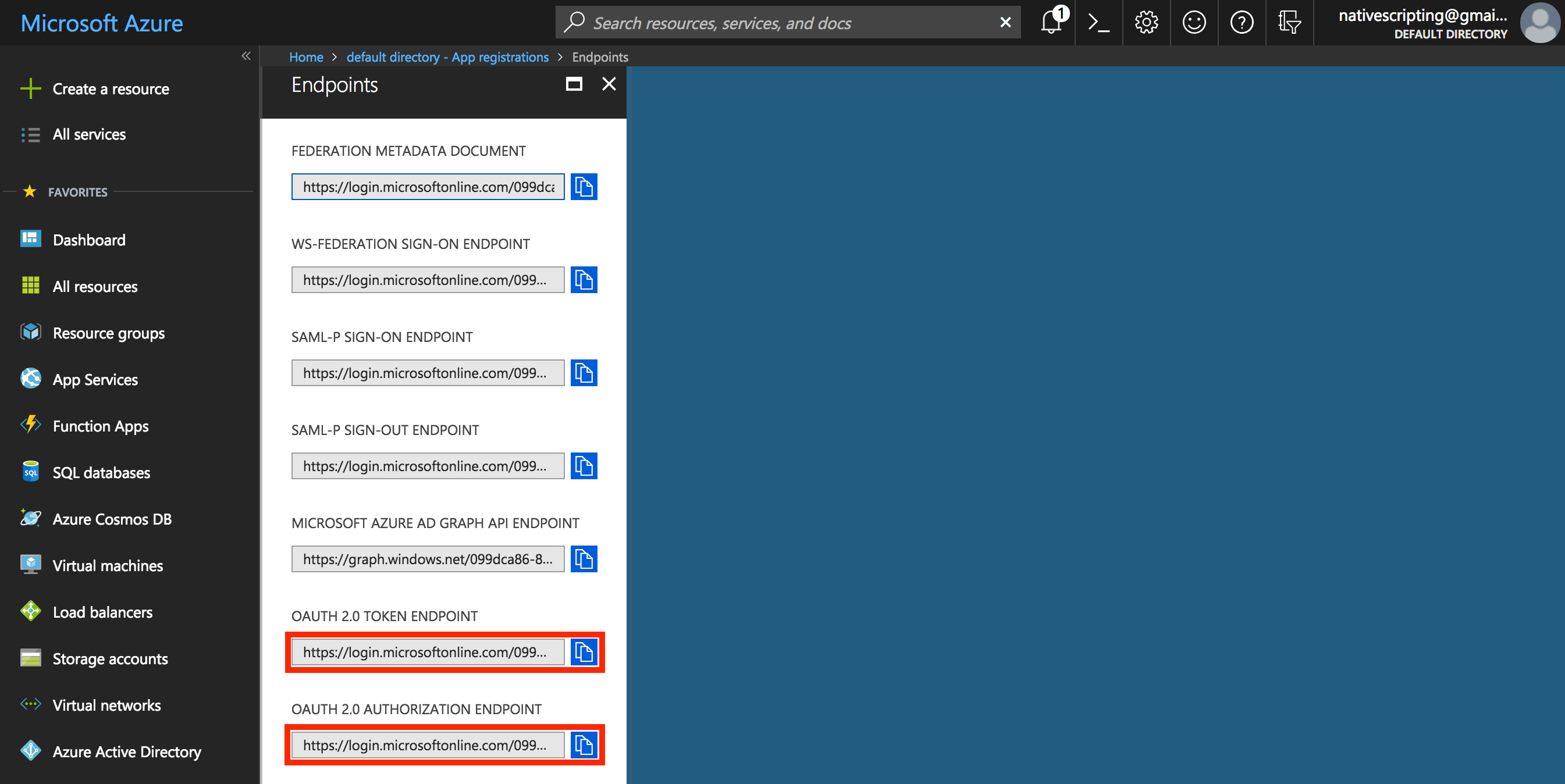 Click on Endpoints and copy both the OAuth 2.0 Token Endpoint and the OAuth 2.0 Authorization Endpoint. Paste the OAuth 2.0 Token into your Word document and call it “Provider URI,” then paste the OAuth 2.0 Authorization Endpoint into your Word document and call it “Grant Endpoint.”