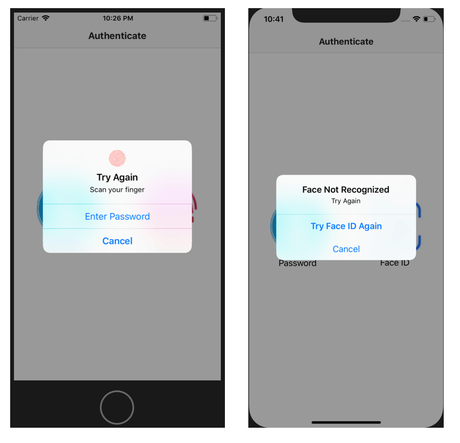 If Face ID fails, the user will have the opportunity to try again or cancel out of Face ID and try another option (in this case, the only other option is to enter a password).