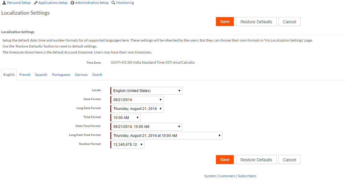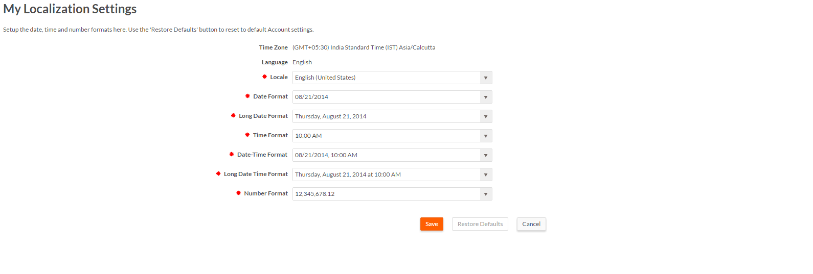 The localization settings can be configured at a tenant level and would be immediately applicable across the tenant for all its users. The platform also lets users configure their own localization settings for their language that then overrides the tenant level settings.