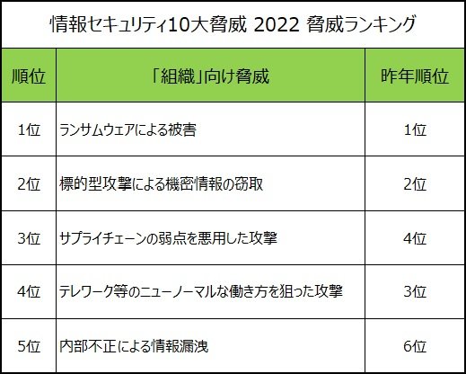 出所:IPA「情報セキュリティ10大脅威 2022」