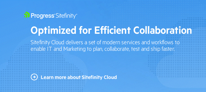 Keeping your website optimized and up to date can be a challenge, but it's critical to ensure high performance and a good user experience. Learn about four ways you can make this process smoother and simpler using Sitefinity Cloud.