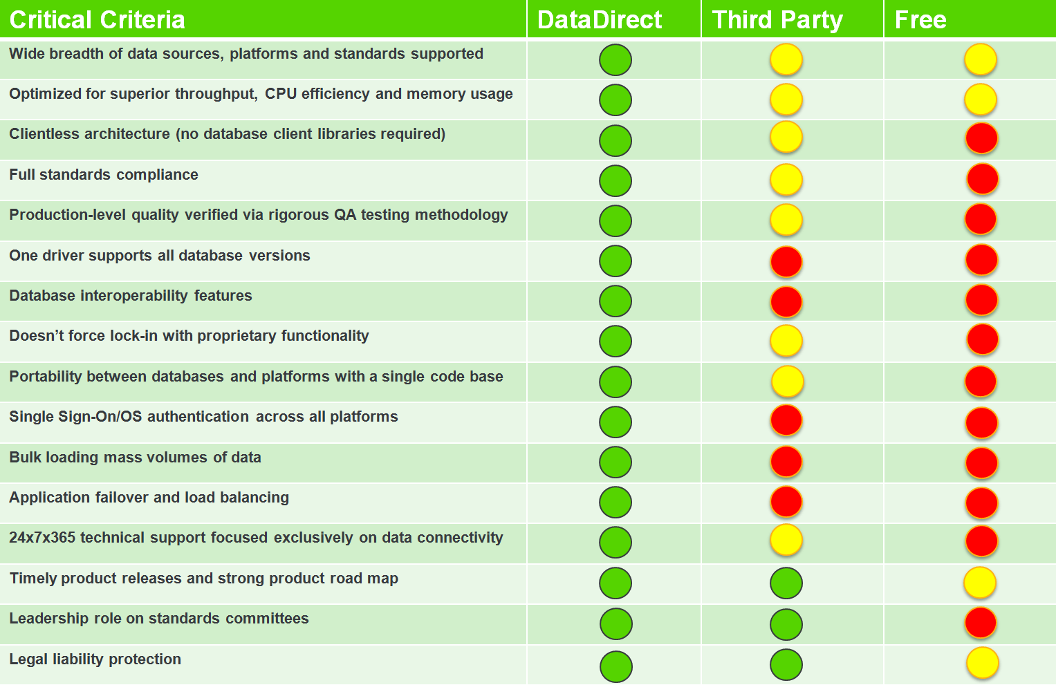 Here’s how Progress DataDirect drivers stack up against third party vendors and free distributions.