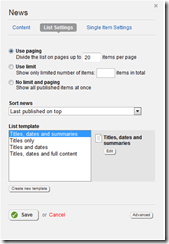 It consists of several different Designer Views through which the user can toggle. For example, the News View widget contains three views: one for selecting the content, one for the List View settings, and finally one for the Single Item (detail view) Settings.