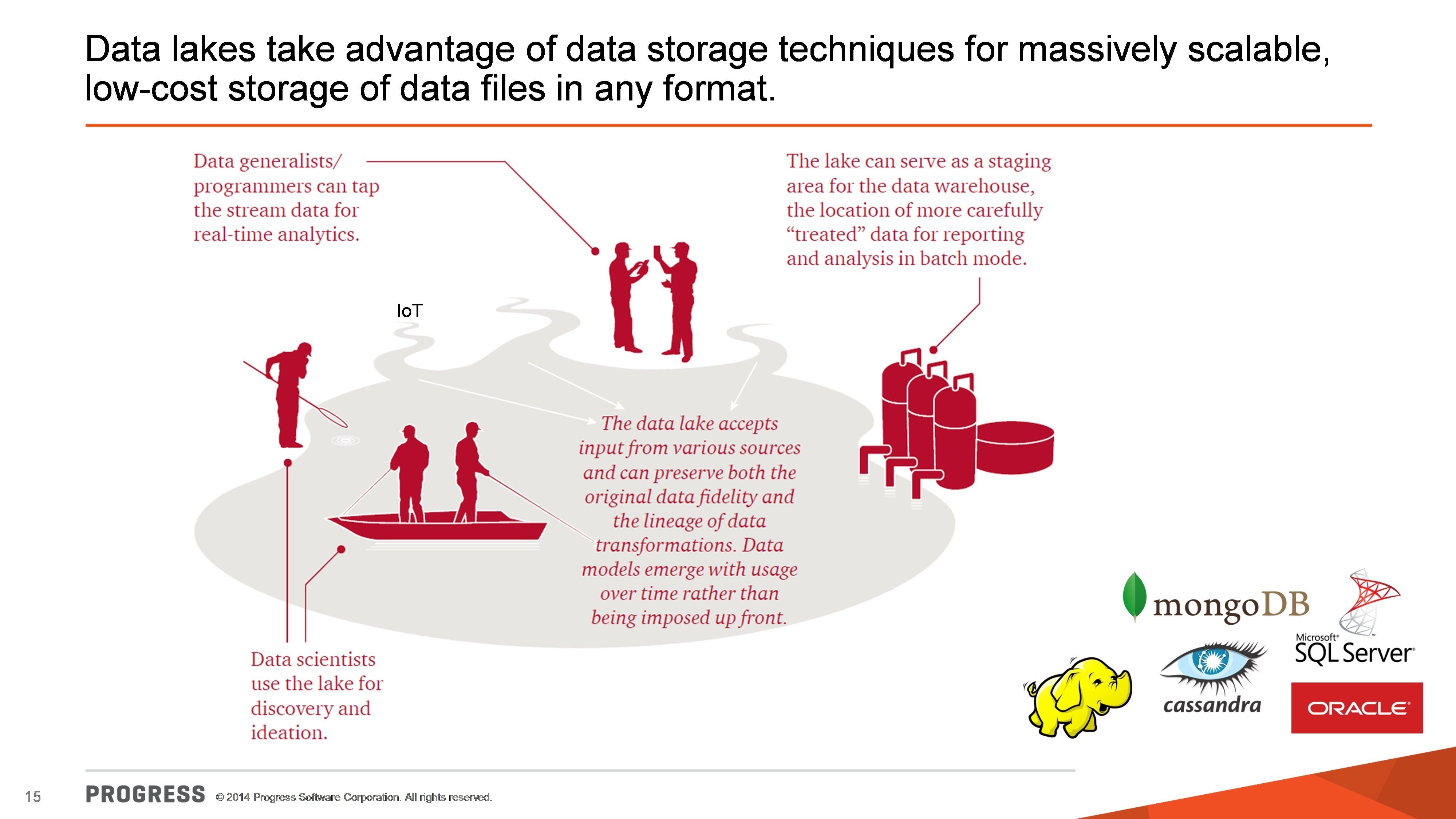 Back to tech-savvy companies. What many of them are starting to do is create data lakes. Basically, with a data lake, you have all these streams of information flowing in so the data is stored in one location. However, if you look a little more closely, below the surface, you will see that these streams are coming in from many different repositories.