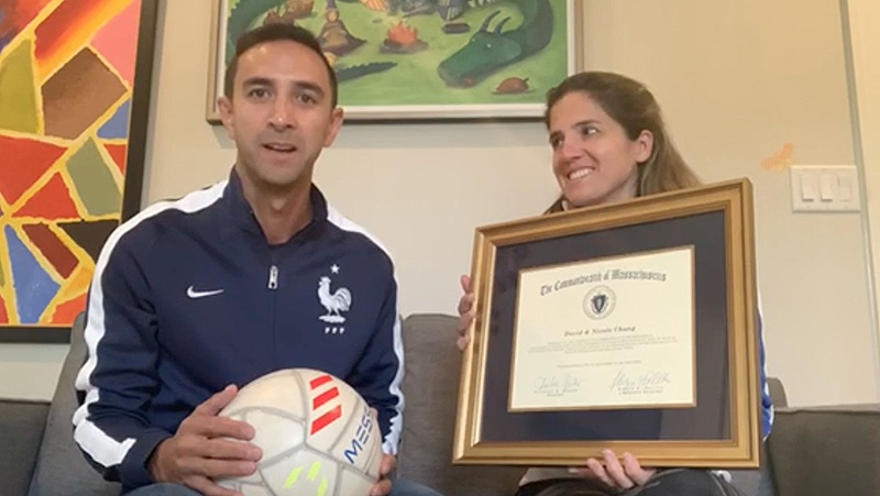 Following her call to action, the Boston Scores’ Leadership Award was presented to David Chang, former board chair, and Nicole Chang, former event committee chair, for all their contributions to the nonprofit, and consequentially Boston youth, during their 15 years with the organization.