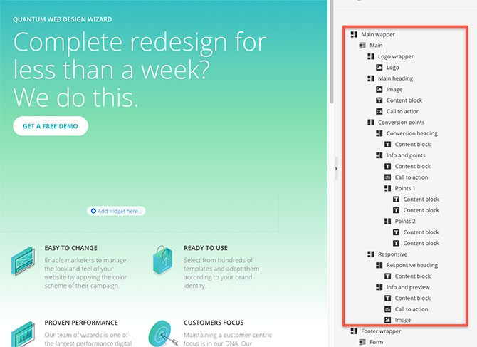 <p class="qu-txt-gray qu-txt-medium">Quickly create a mobile site optimized for any device. All our designs are touch-friendly, easy to customize and offer accelerated mobile pages.</p>And that’s that, we are ready with the Main section. Just make sure you check out the Page structure as well, as we changed section labels in order to be more visible in the structure.