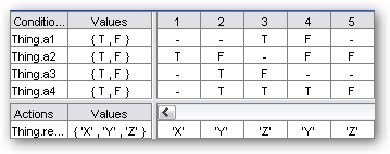 Suppose we have the decision table above. Notice how much harder it is to spot ambiguities when the conditions are generic.