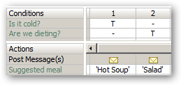 Figure 3: A rules model suggesting a meal when certain conditions exist.