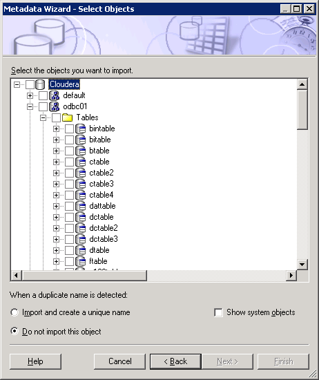 6. Navigate to the data source and select objects directly from Cloudera to import