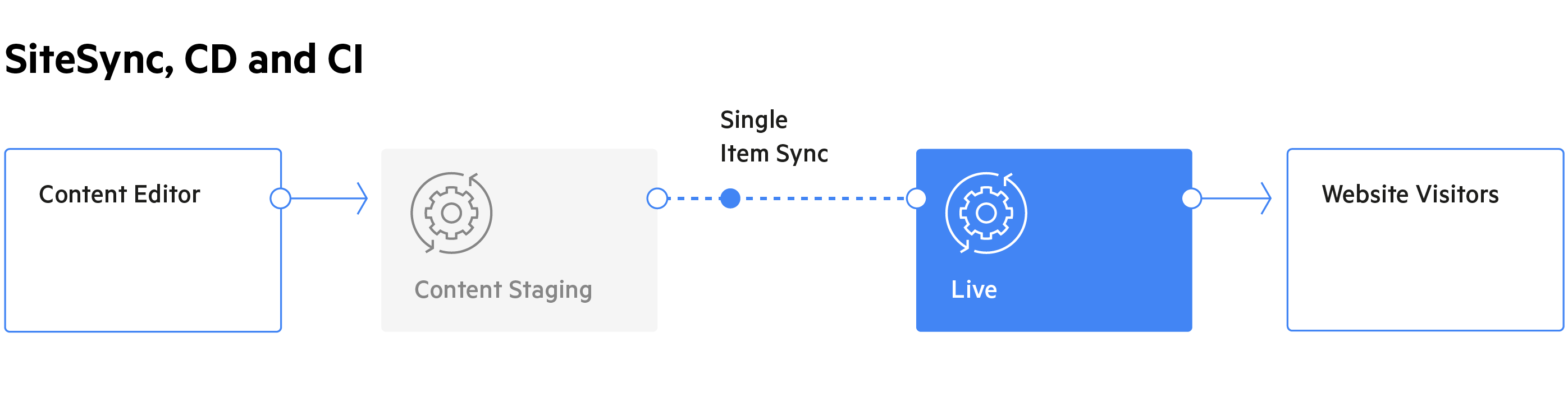 Sitefinity CMS supports content synchronization between testing and live environments and CI/CD out of the box. SiteSync is integrated with the workflows and the relevant permissions can be applied to it. That means you, as a decision maker, can rest assured that only a select few have the power and the privilege to act upon the marketing launch plan and let the world know about your brand new product offering.