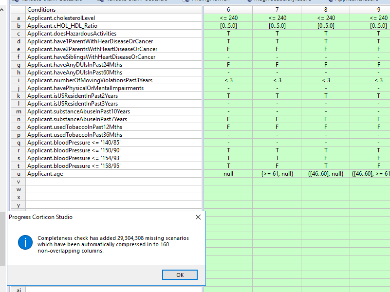 2. Example of one of Corticon Studio's Rule Integrity Checks, the "Completeness Checker"