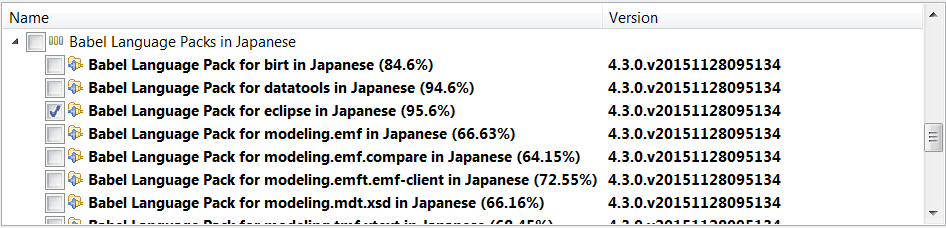 Once it has displayed the list of available translations, select the “Babel Language Pack for eclipse” of your choice