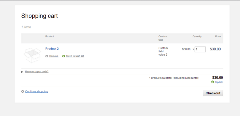 By design, the Shopping cart widget template displays information about the purchased products including the product's title, the product's price, the quantity, subtotal price as shown in the screenshot below: