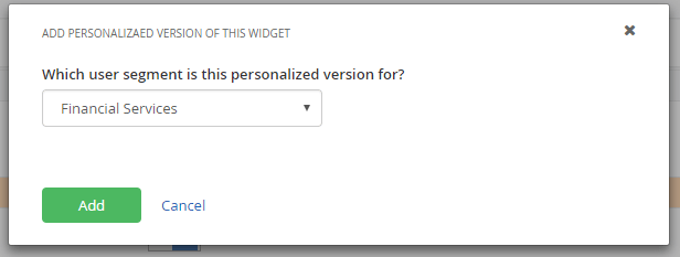 First, personalize the widget that lists and displays success stories content, based on the industry user segment. For details, see Personalize a widget.