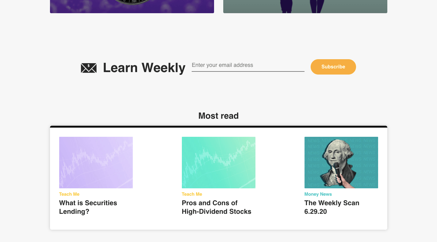 One product I like that does this well is Stash. It has an entire section of its site (and app) dedicated to “Education."