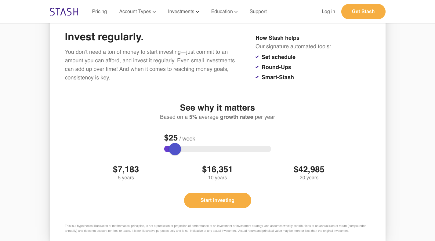 Stash provides a tool that helps leads see why investing matters and what a difference it can make. By using the slider, they’ll see how much more than can save.