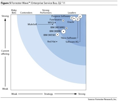 In April independent research firm Forrester Research, Inc. named Progress Software as a leader in “The Forrester Wave™: Enterprise Service Bus, Q2 2011” report. In this detailed review of Enterprise Service Bus (ESB) providers, Progress Sonic ESB was recognized with particularly high scores for its ESB architecture, orchestration as well as change and control capabilities. The report also gave Sonic ESB high scores for product strategy and strategic alliances, while also scoring the product highly for its large customer install base.